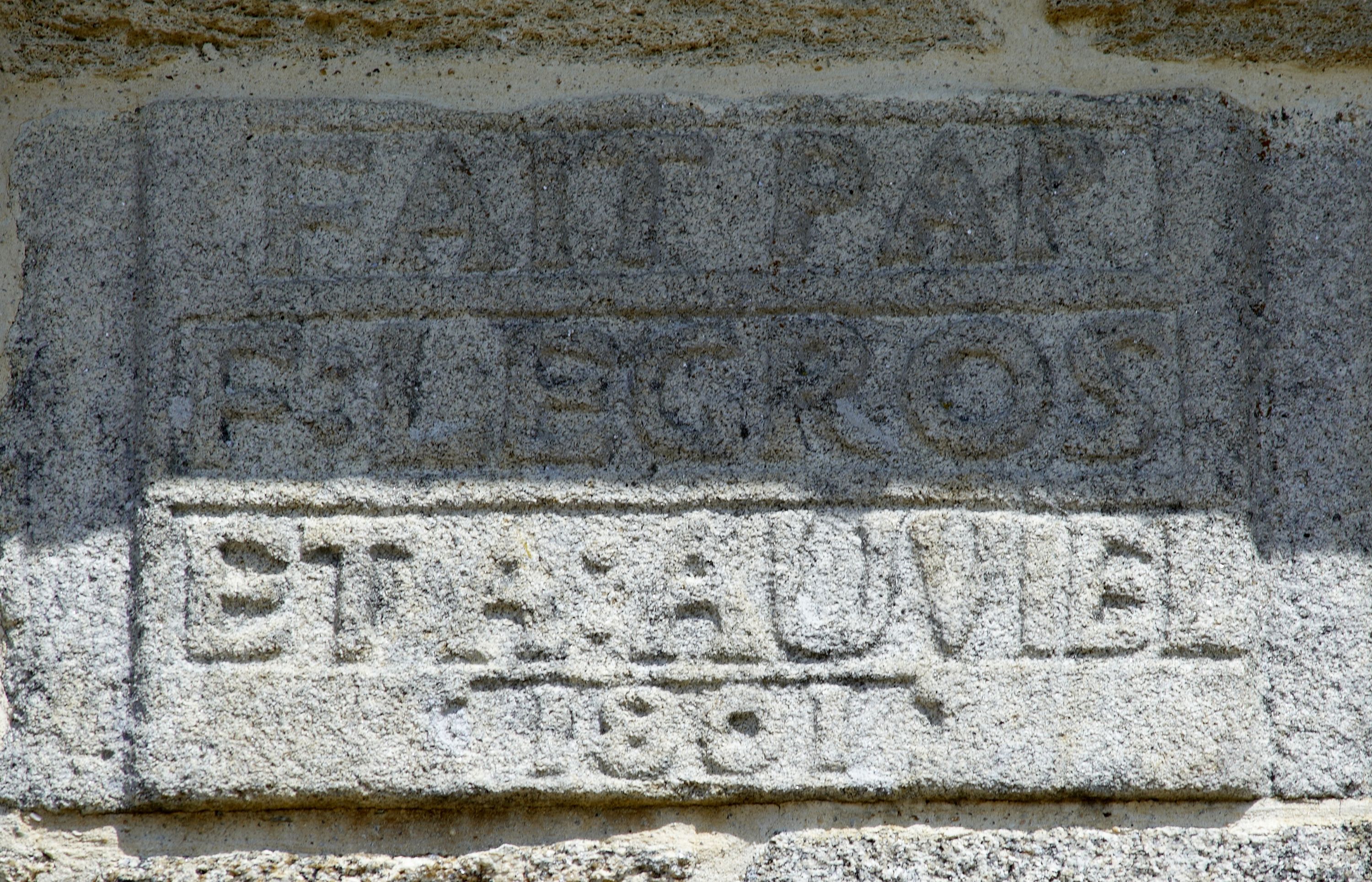 Alignement 2. Détail : Pierre insérée dans la maçonnerie portant inscription et dateImmatriculation