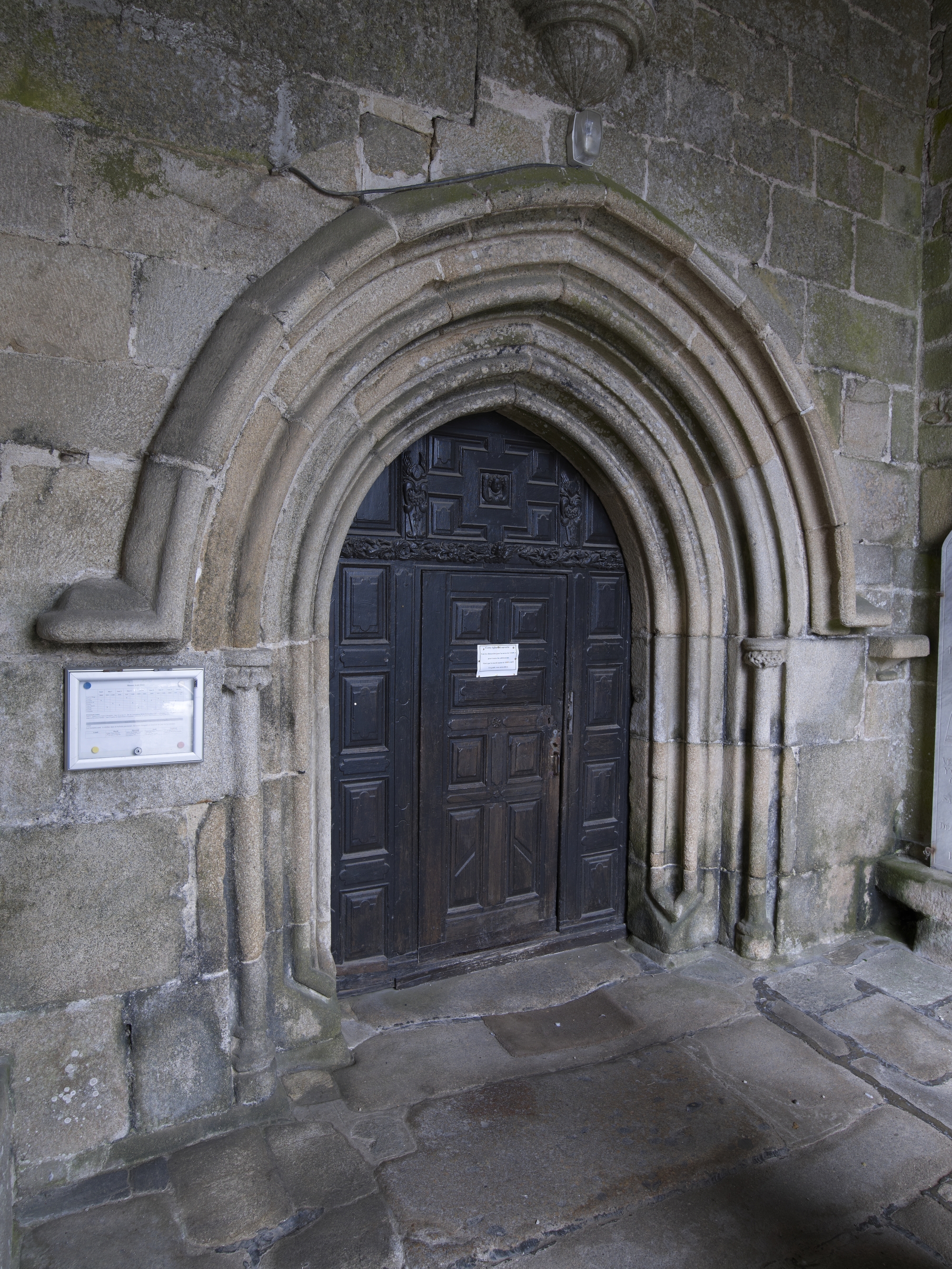 Vue intérieure du porche sud, détail de la porteImmatriculation