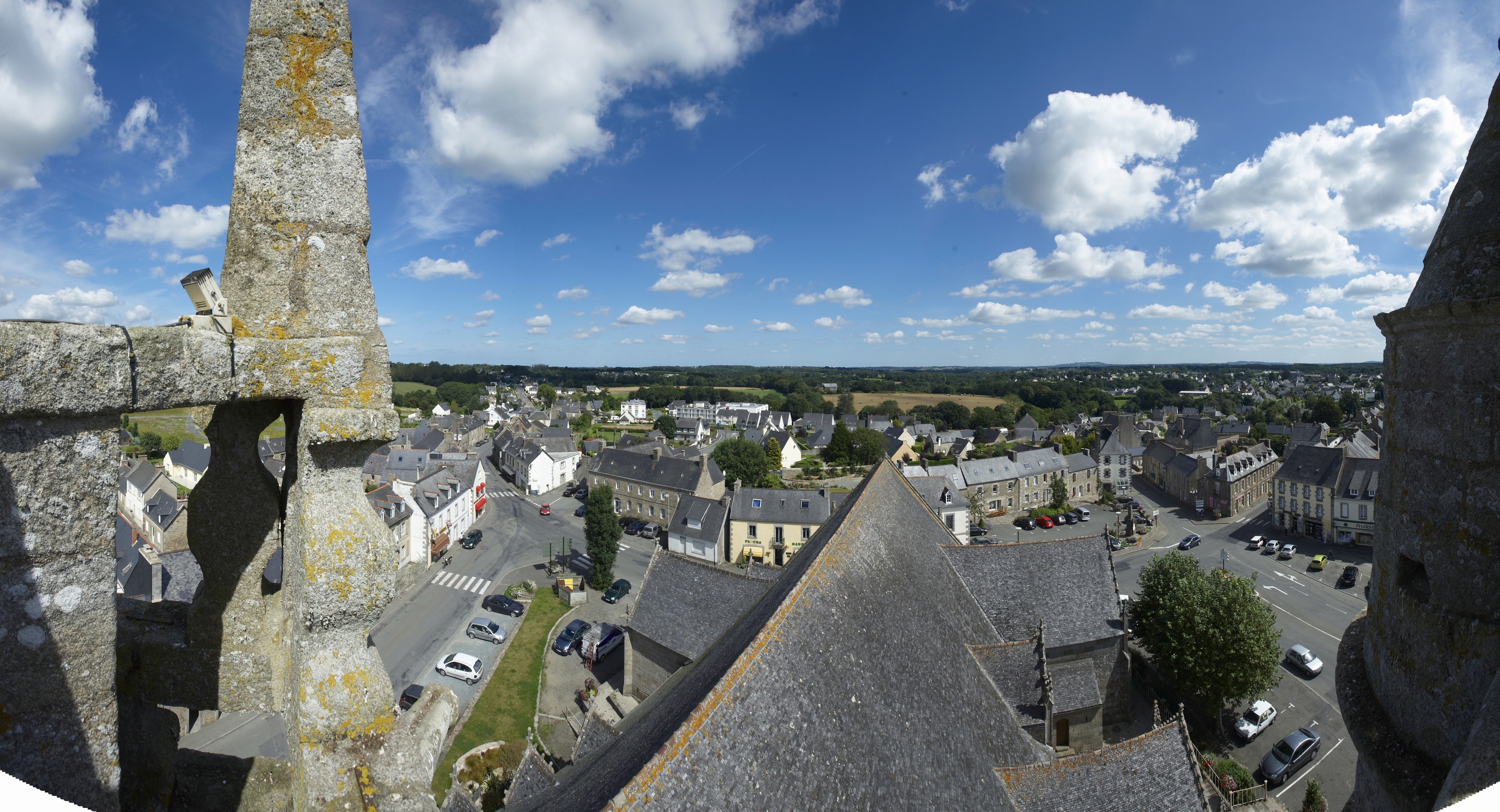 Plouaret : vue panoramique depuis le clocher de l'église paroissiale Notre-Dame, vers l'estImmatriculation