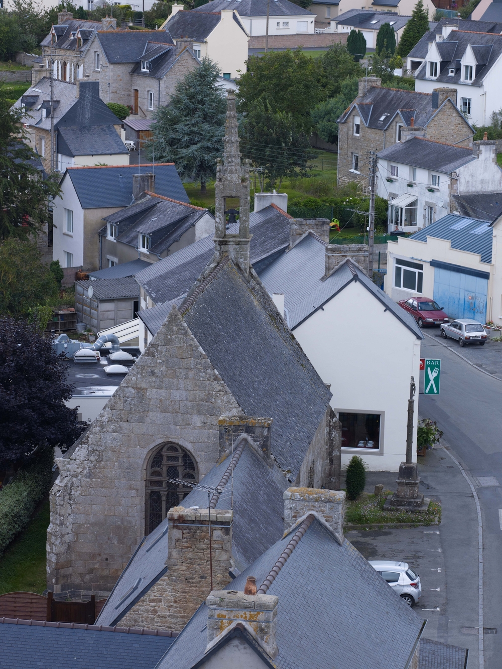 Plouaret : vue depuis le clocher de l'église paroissiale Notre-Dame, vers la chapelle Sainte-BarbeImmatriculation