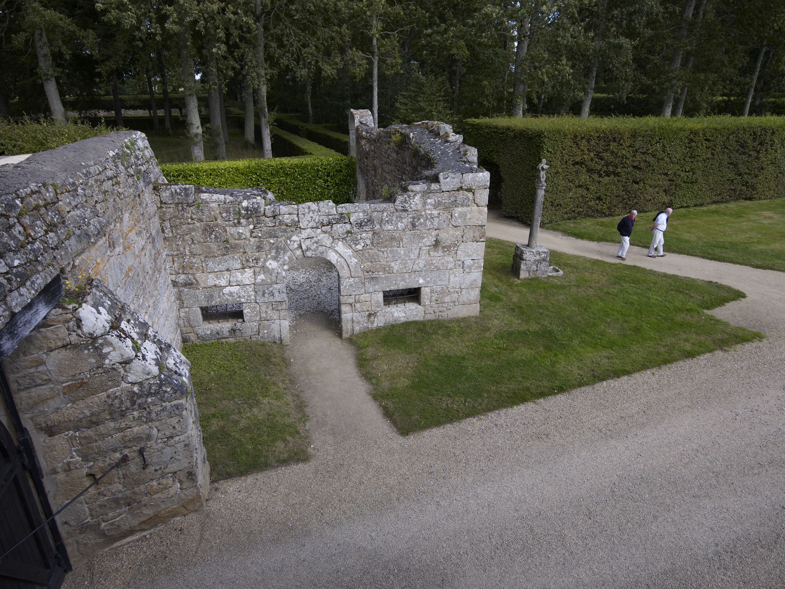 Vue des vestiges de la chapelle située au nord du château et son calvaireImmatriculation