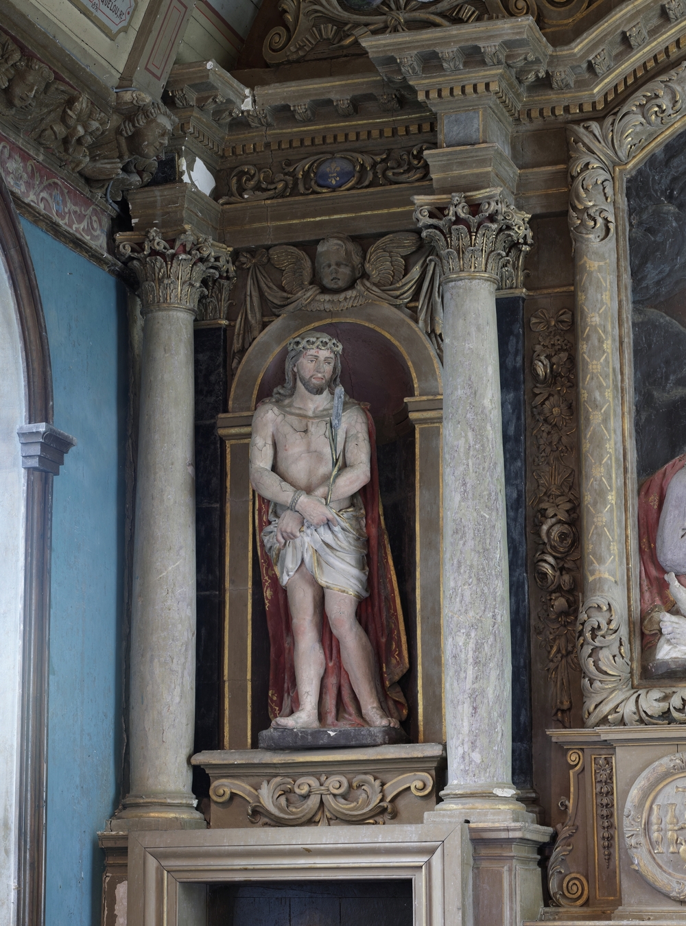 Lanvellec, Saint-Carré : chapelle Notre-Dame-de-Pitié, vue intérieure, statue représentant le Christ aux liensImmatriculation