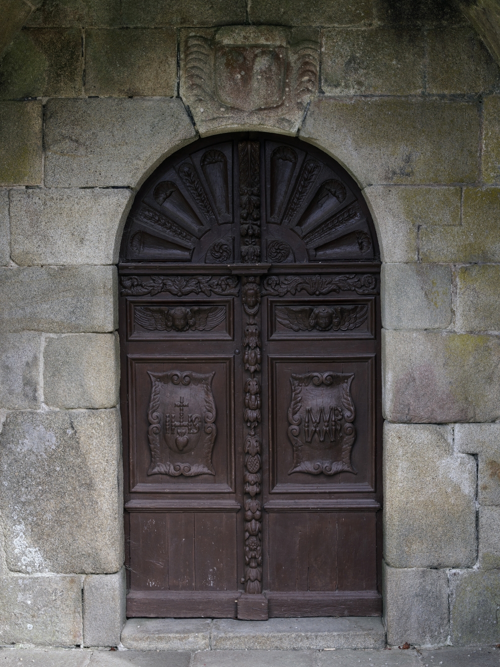 Lanvellec, Saint-Carré : chapelle Notre-Dame-de-Pitié, détail de la porte ouestImmatriculation