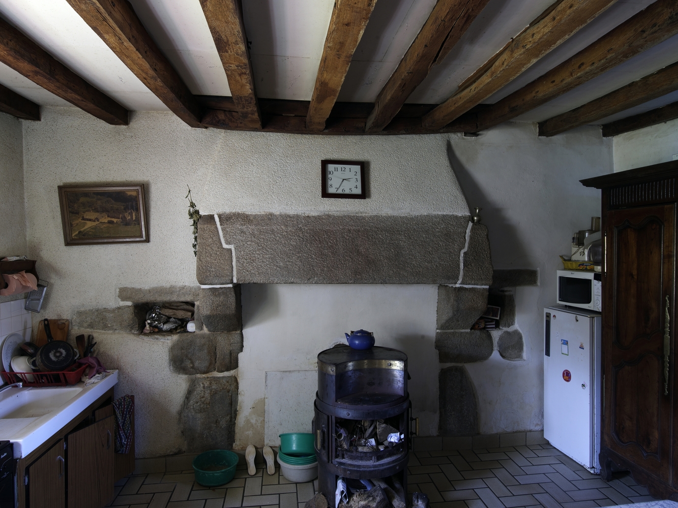 Lanvellec, Goaz Ru : manoir, vue intérieure, rez-de-chaussée, cheminée ouest de la salleImmatriculation