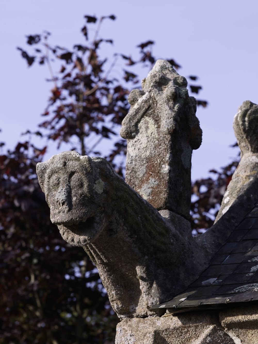 Lanvellec, Saint-Maudez : chapelle, angle sud-est, crossette sculptée représentant un lionImmatriculation