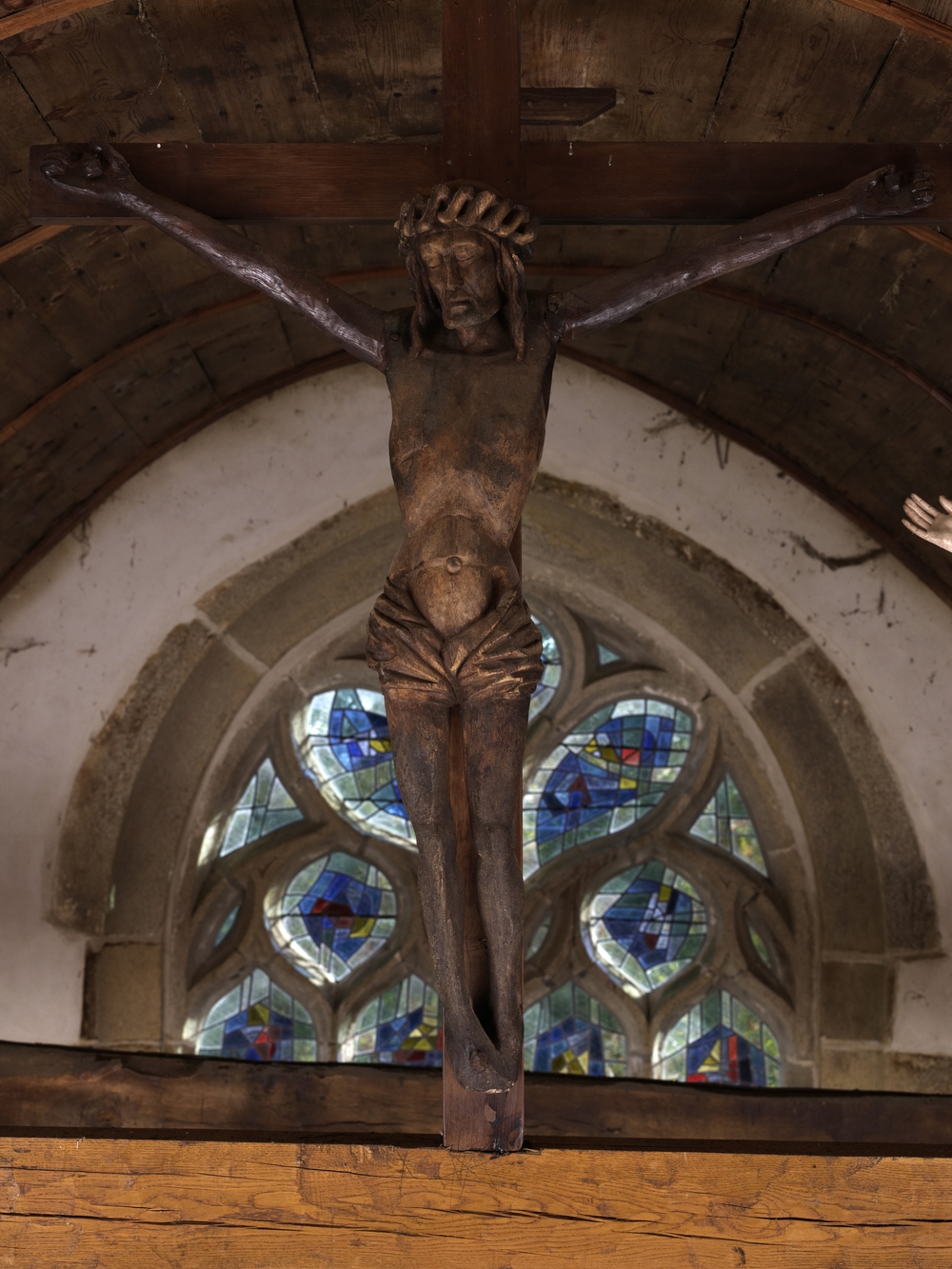 Lanvellec, Saint-Maudez : chapelle, vue intérieure, statue du Christ de la poutre de gloireImmatriculation