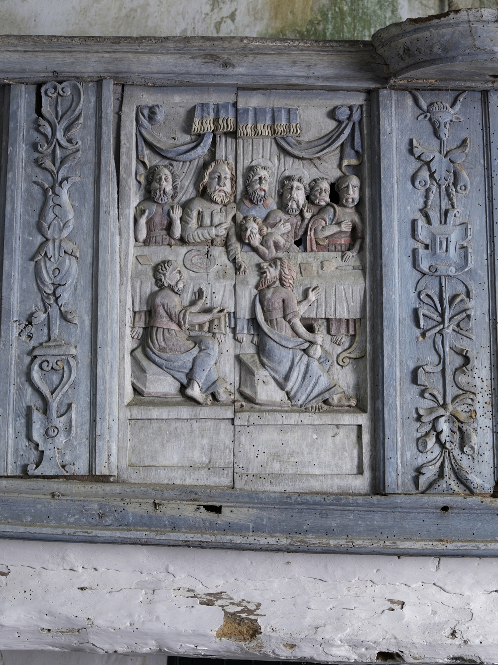 Tribune en bois polychrome, compartiment sculpté représentant des scènes de la Passion, la CèneImmatriculation