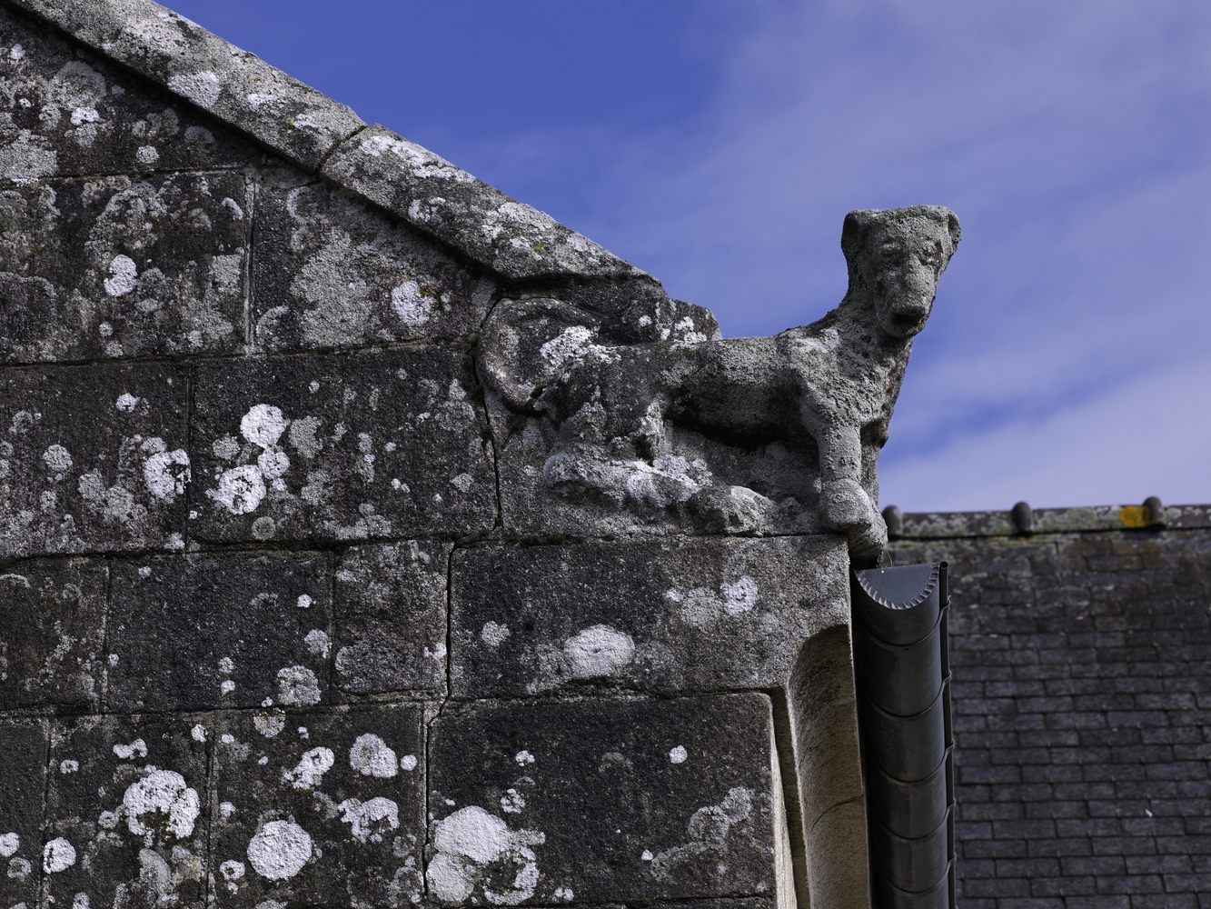 Vue du clocher-mur occidental : détail d'une crossette sculptée (remploi)Immatriculation