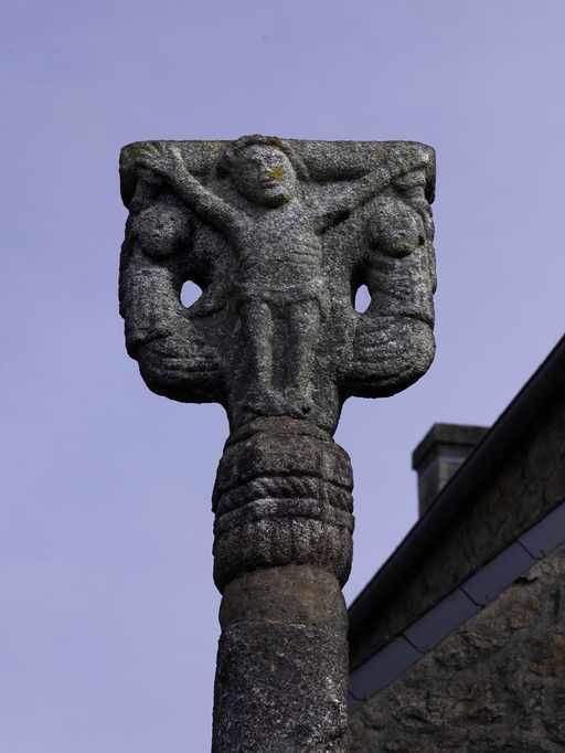 Cavan, le bourg, rue Charles et Henri Avril : calvaire, vue de détail, Christ en croixImmatriculation