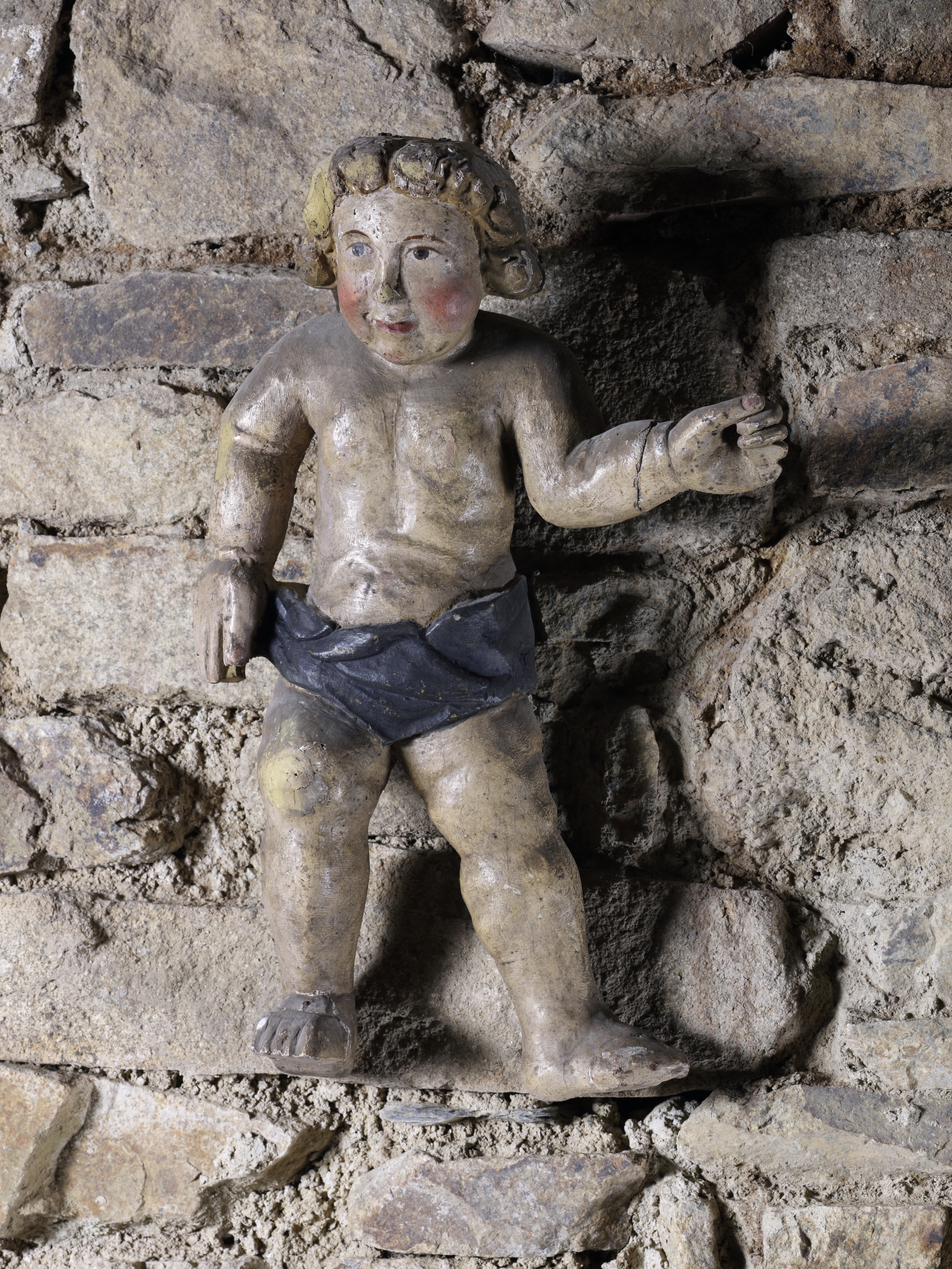 Prat, Trévoazan : chapelle Saint-Jean de Trévoazan, vue intérieure, statue (état en 2012)Immatriculation