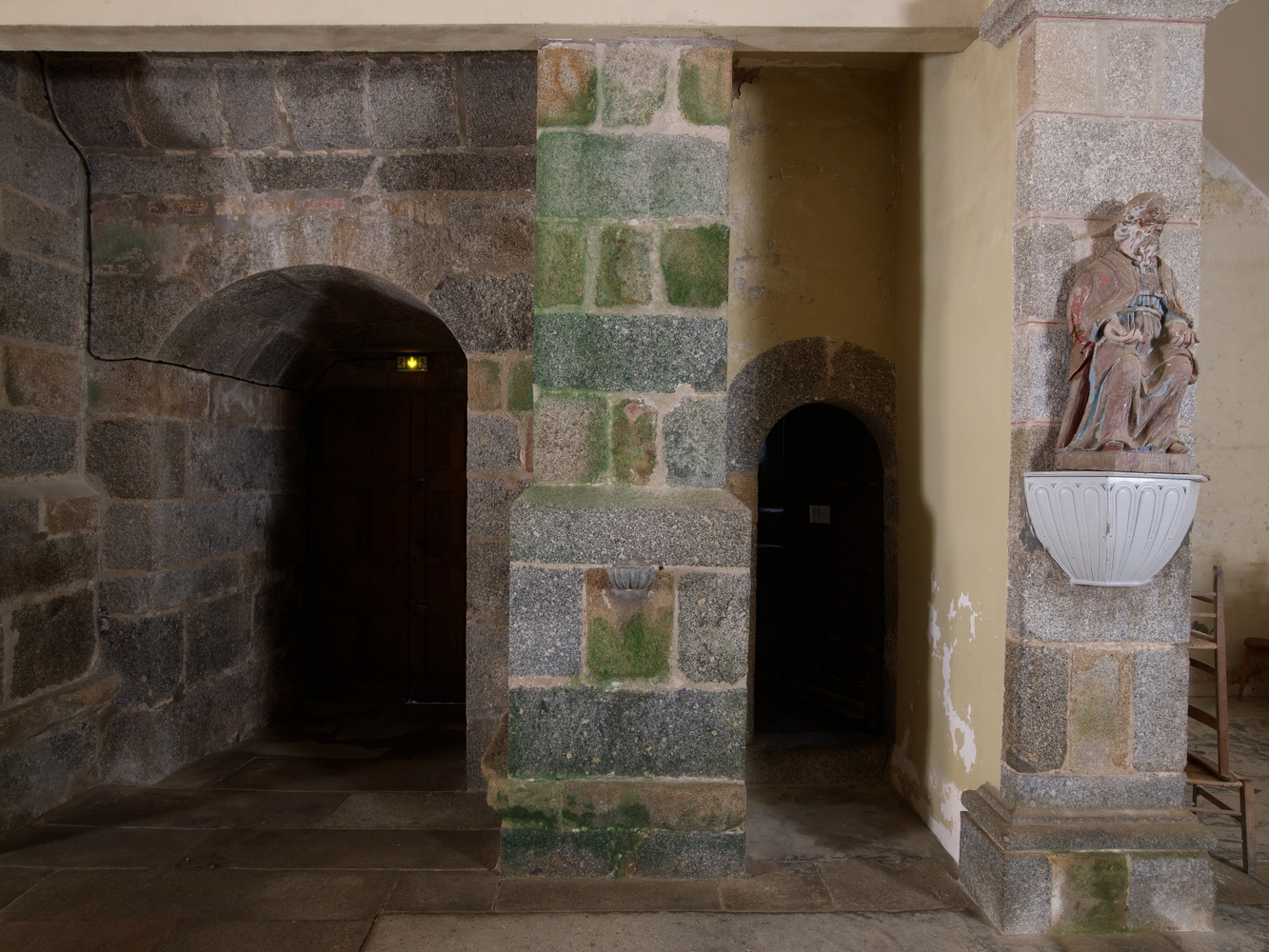 Prat, le bourg : église paroissiale Saint-Pierre, vue intérieure, base du clocherImmatriculation
