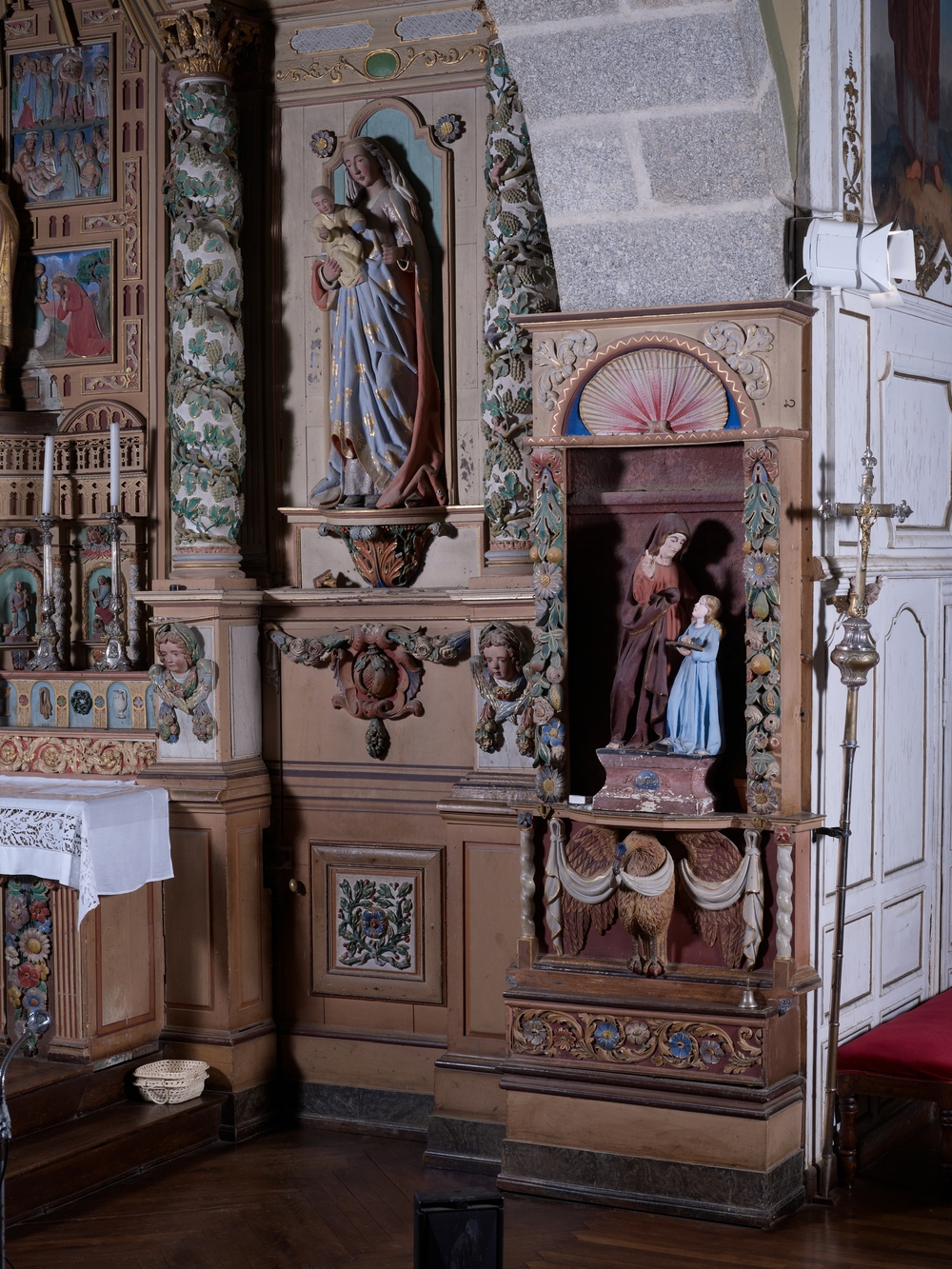 Prat, le bourg : église paroissiale Saint-Pierre, vue intérieure, retable nordImmatriculation