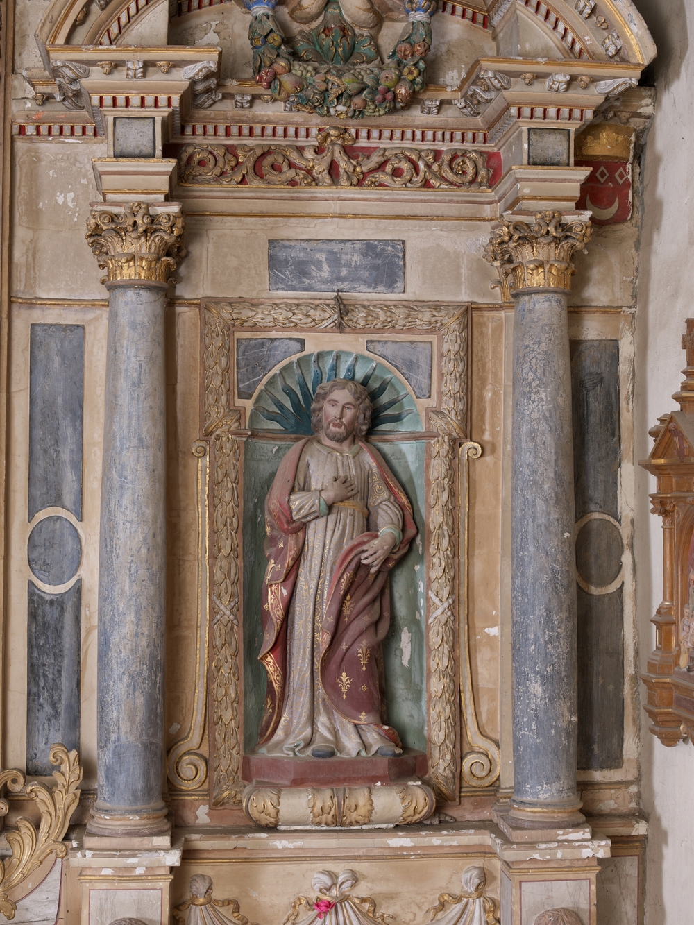 Prat, le bourg : église paroissiale Saint-Pierre, vue intérieure, retable sud, SaintImmatriculation
