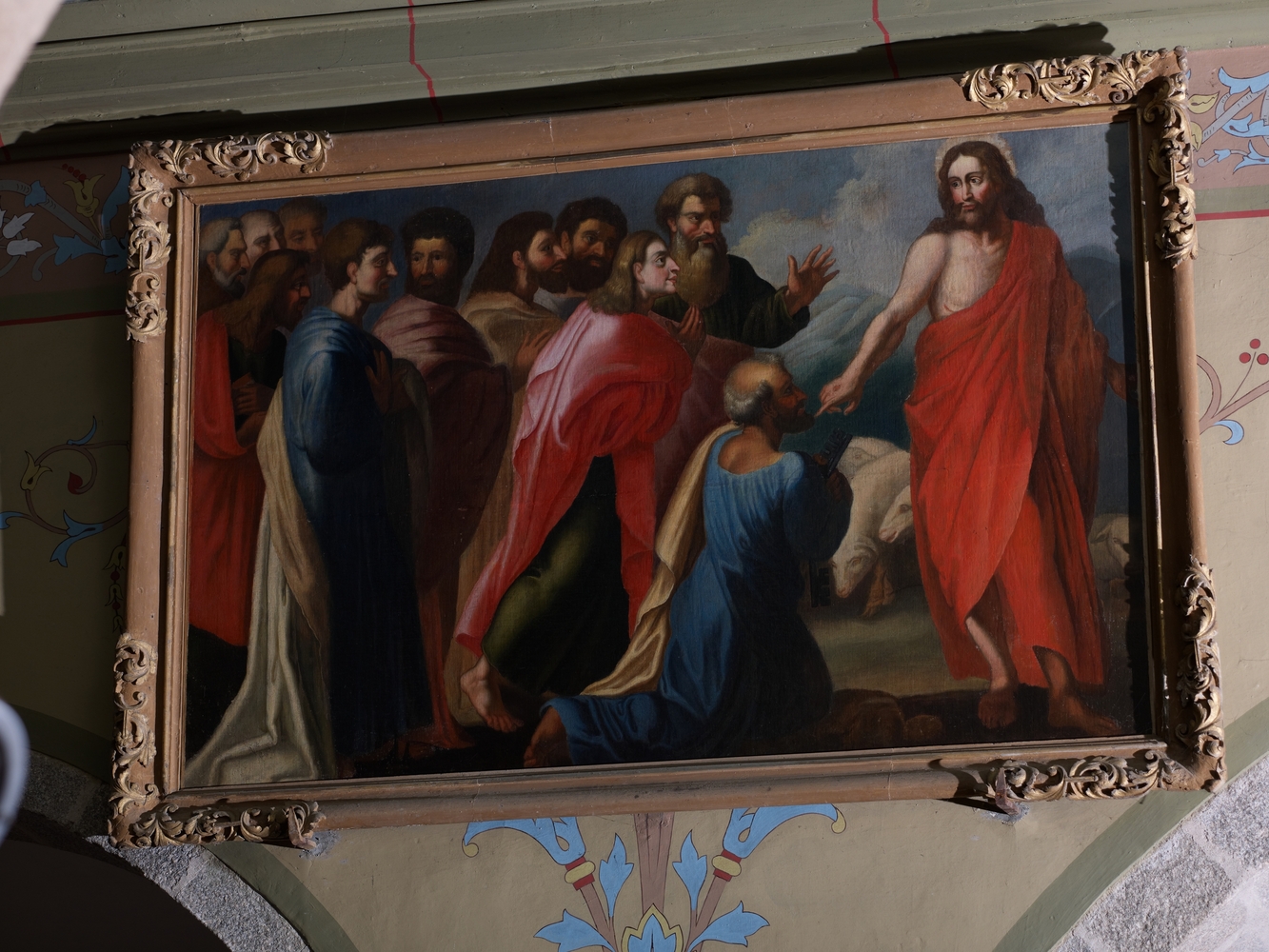 Prat, le bourg : église paroissiale Saint-Pierre, vue intérieure, tableauImmatriculation