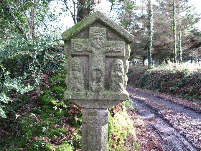 Plouaret, Kerbridou : croix de chemin en granite à bâtière, Christ à la facture naïveImmatriculation