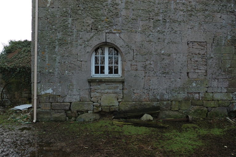 Plouaret, Coat Roué : manoir, élévation postérieure. Détail de la porte en plein cintre est et d'une baie muréesImmatriculation