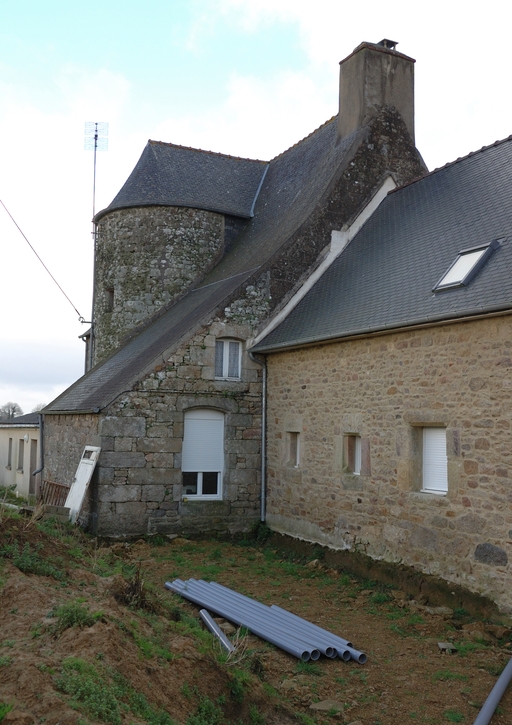 Plouaret, Kerverziou : manoir, pignon sud, appentis et tour d'escalier couverte d'un toit coniqueImmatriculation