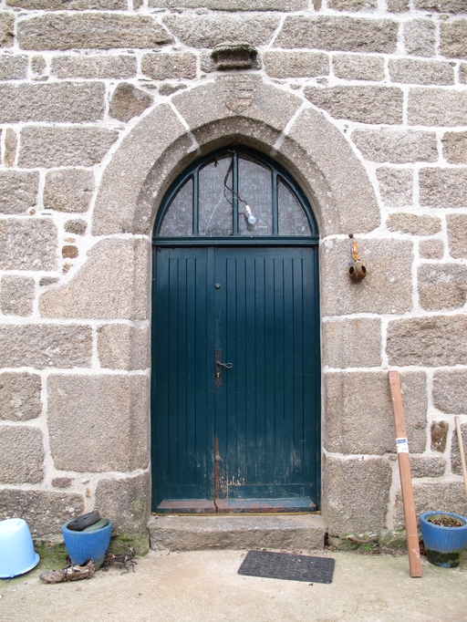 Plouaret, Kervégan Braz : manoir, élévation antérieure, porte en arc bisé surmontée d'armoiriesImmatriculation