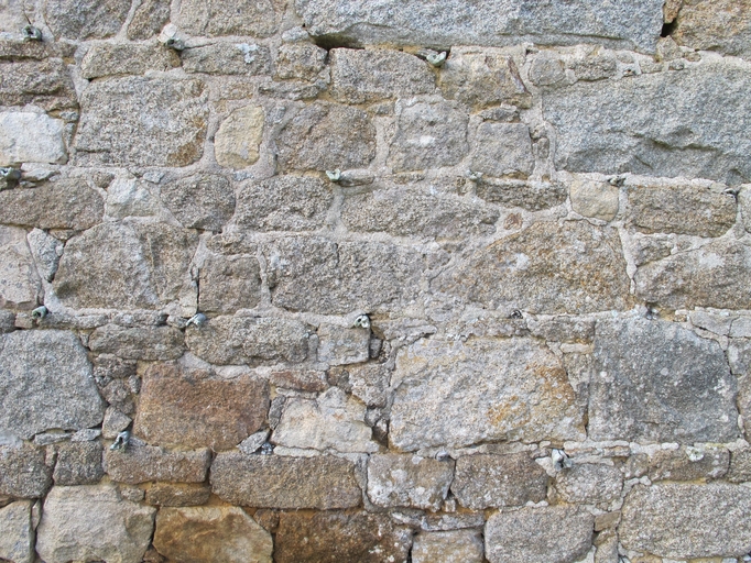 Plouaret, Guergarellou : ferme, retour d'équerre nord, os fichés dans le mur. Ils servaient probablement à maintenir des plantes grimpantesImmatriculation