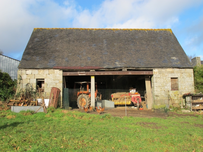Plouaret, Guergarellou : grange à deux piliers, élévation antérieure orientée sudImmatriculation