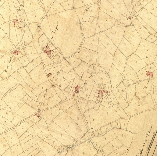 Extrait du cadastre ancien de la commune de Plouaret, 1835 : Convenant Réguer, Convenant Jacob, ar Penquer, Convenant ar Kdanet, Convenant Brian (Coat Roué), Coat Boue (Coat Roué) et Kverziou (Kerverziou)Immatriculation