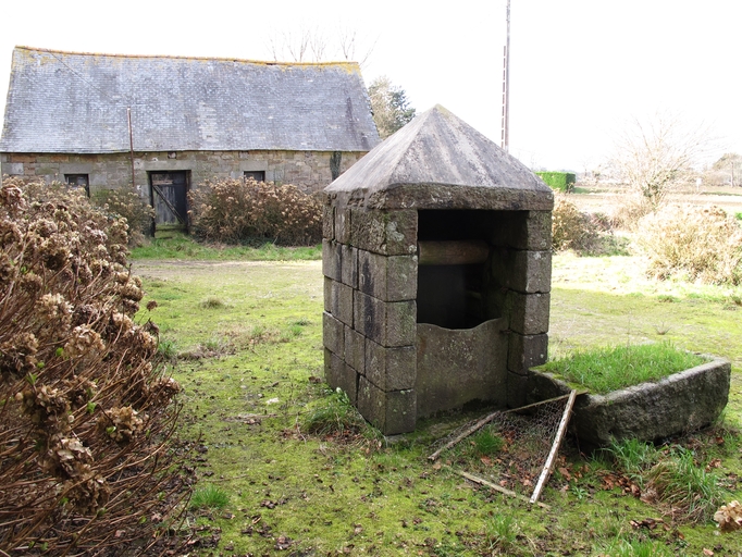 Plouaret, Kerbest : puits et auge. En arrière plan : l'étableImmatriculation