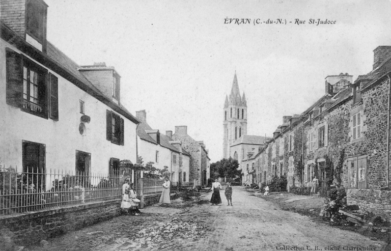 Reproduction d´une carte postale ancienne, rue de St Judoce, Cliché Charpentier,fonds : Pierre MarquéImmatriculation
