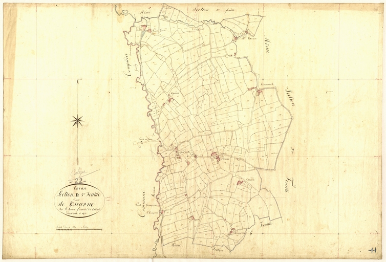 Cadastre ancien, commune de Cavan, 1 tableau d'assemblage et 11 feuilles, 1835.Cadastre.