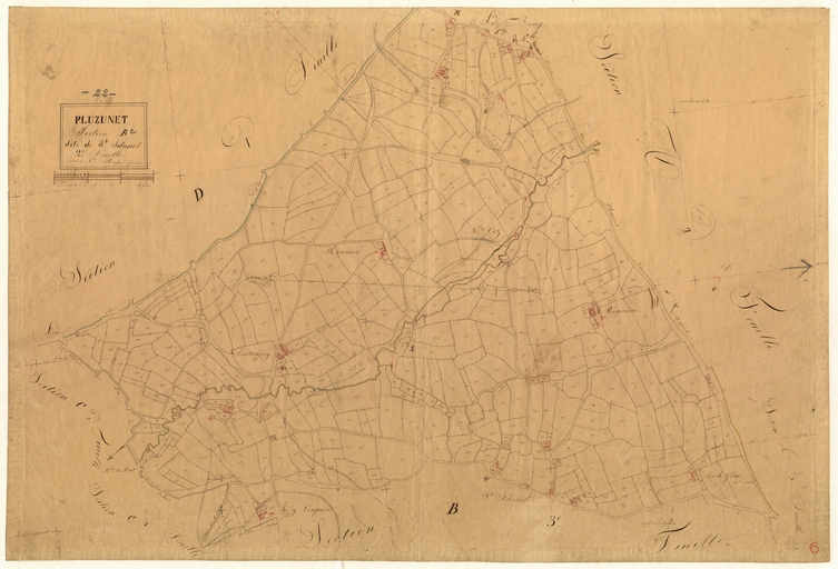 Feuille B2 du cadastre ancien de la commune de Pluzunet, 1834Immatriculation