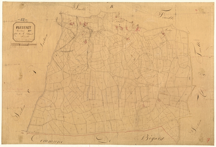 Feuille B3 du cadastre ancien de la commune de Pluzunet, 1834Immatriculation