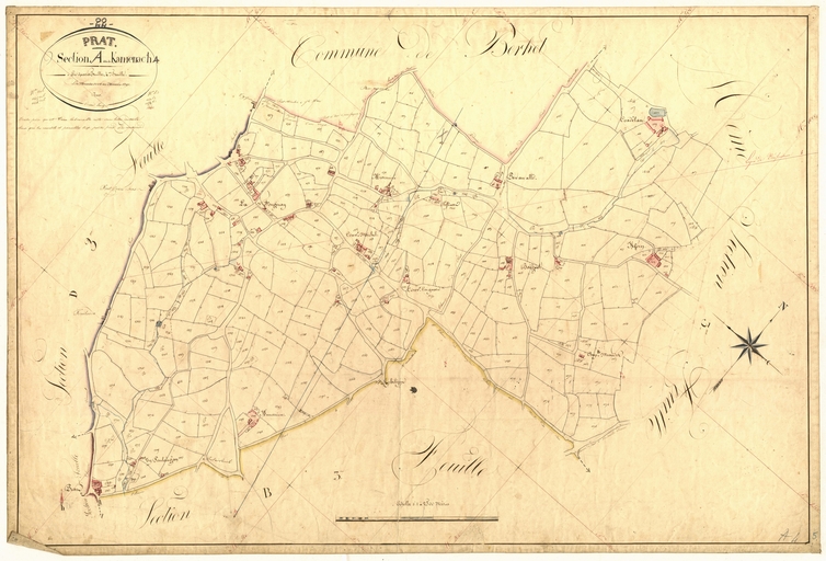 Feuille A4 du cadastre ancien de la commune de Prat, 1835Immatriculation