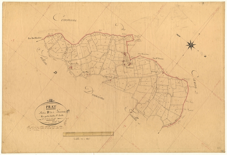 Feuille D1 du cadastre ancien de la commune de Prat, 1835Immatriculation