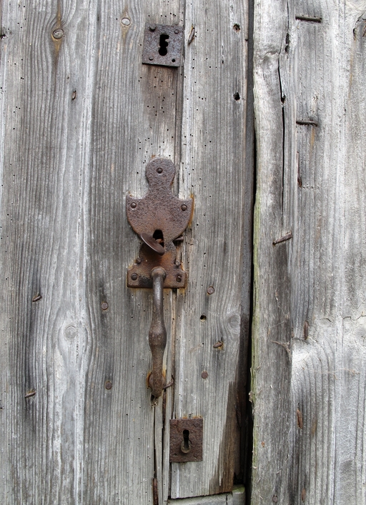 Pluzunet, Kerlistouedou : ferme, élévation antérieure, porte, détail du dispositif de fermeture (loquet poucier)Immatriculation