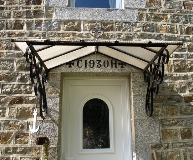 Plzunet, Parrousseau : maison de type ternaire. Le linteau porte l'inscription et le millésime suivants : [croix] C 1930 H [croix]Immatriculation