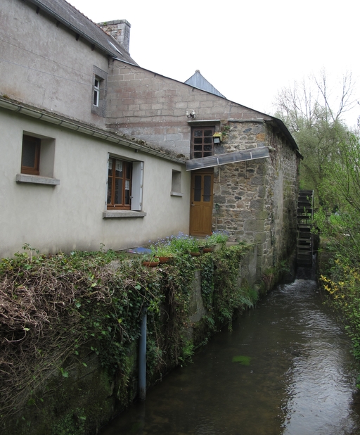 Caouënnec-Lanvézéac, Milin Rohou : moulin à eau sur le Guindy, élévation postérieure, détail de la roue à aubesImmatriculation
