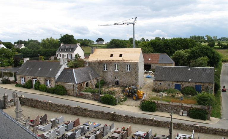 Coatascorn, le bourg : vue générale vers le sud depuis le clocher de l'église paroissiale de Saint-MaudezImmatriculation