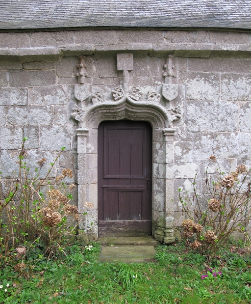 Cavan, Bardérou : chapelle Notre-Dame des Anges, élévation sud, porte ornée de style gothiqueImmatriculation