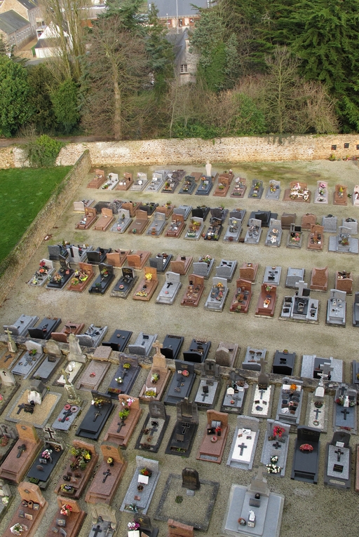 Cavan, le bourg : vue générale du cimetière depuis le clocher de l'église paroissiale Saint-ChéronImmatriculation