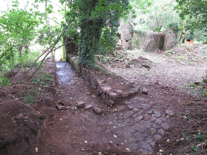 Cavan, Kerguézennec : vue des vestiges du moulin à eau sur le Guindy à l'issue du chantier international (juin 2011)Immatriculation