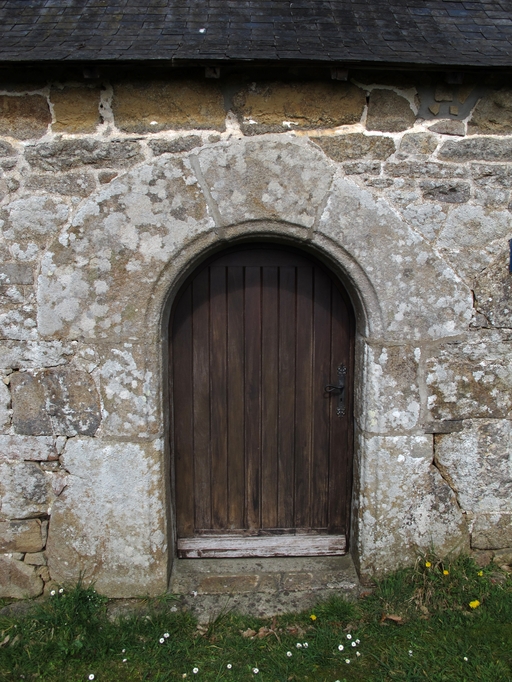 Tonquédec, Saint-Guénolé : chapelle, élévation sud, porte, vue de détailImmatriculation