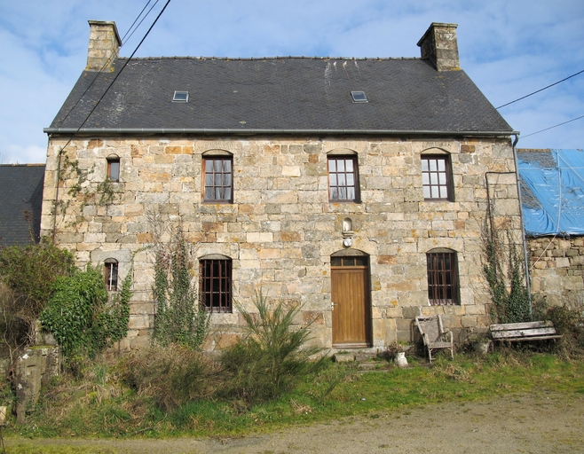 Tonquédec, Kerjean : logis de ferme (1828). Les linteaux de fenêtre portent le millésime et l'inscription suivante : F : FAIRE PAR YVES ROUXAULT ET MARIE LE PIÈRE L'AN 1828Immatriculation