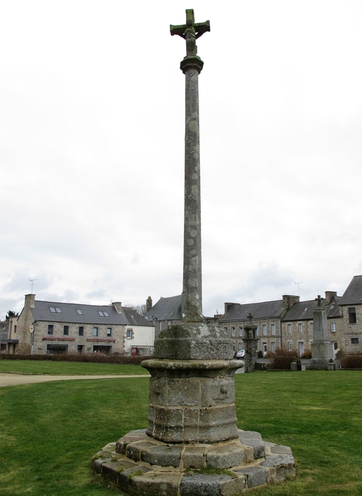 Tonquédec, le bourg, place de l'église : croix monumentale, vue généraleImmatriculation