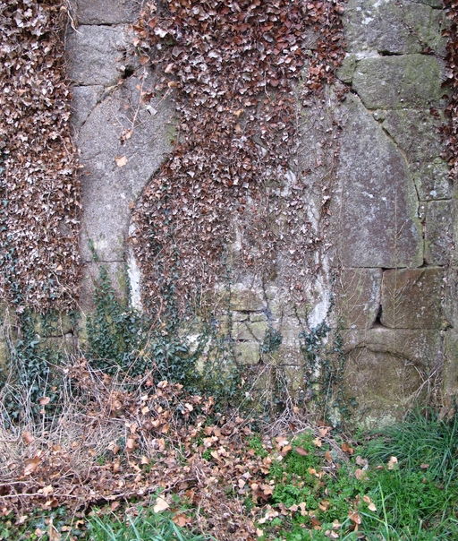 Tonquédec, Penn Ar Guer : ferme (17e siècle), élévation postérieure orientée vers le nord, porte en arc plein cintre aujourd'hui murée, vue de détailImmatriculation