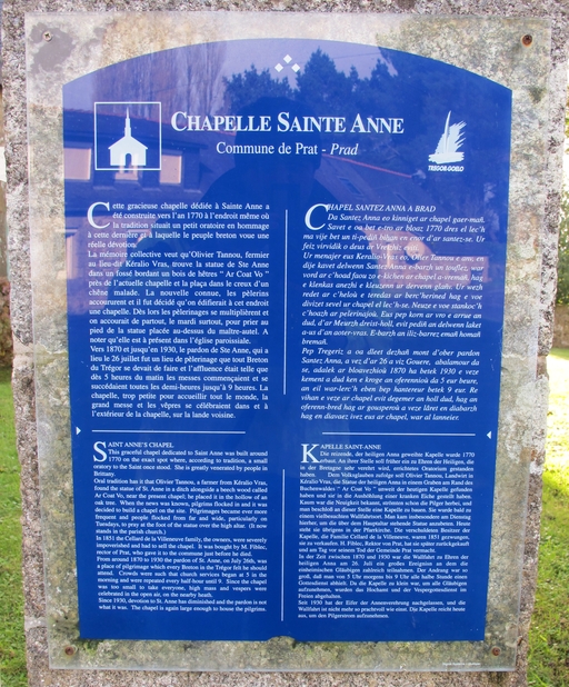 Prat, Sainte-Anne : chapelle Sainte-Anne, signalétique en placeImmatriculation