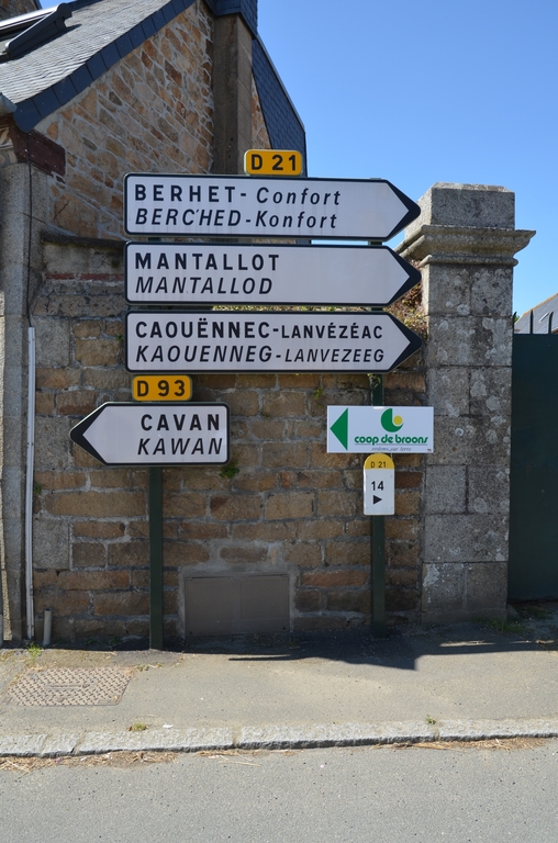 Prat, le bourg, place de la Mairie : signalétique routière faisant face à la mairieImmatriculation