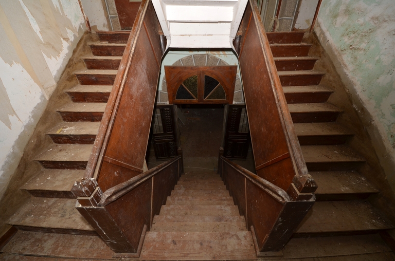 Prat, Convenant Caignard : logis de ferme, vue intérieure, double escalierImmatriculation