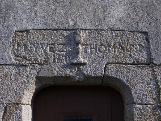 Façade sud, porte d'entrée, détail du linteauImmatriculation