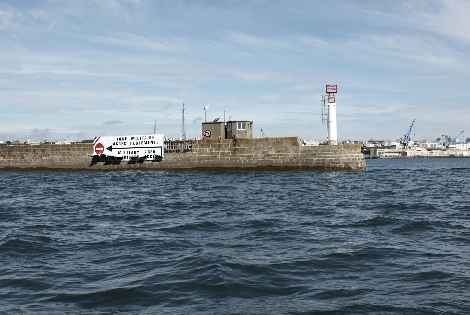 Brest : la rade abri, extrémité de la grande jetée sud, signalétique et feu, vue généraleImmatriculation