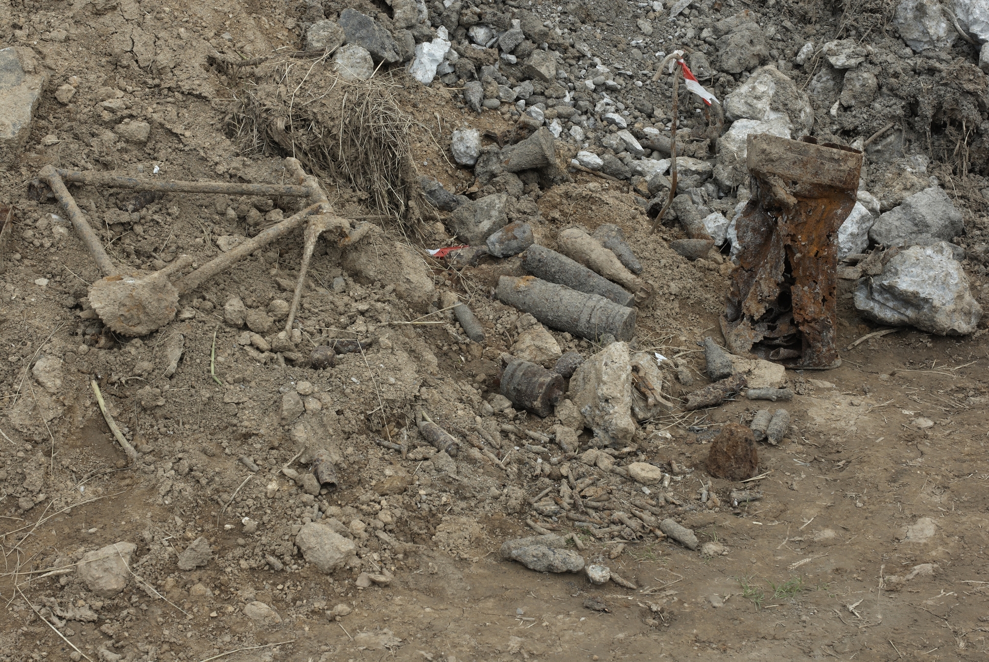 Vestiges métalliques et matériels pyrotechniques (projectiles de différents types...) découverts lors de la déconstruction des bunkersImmatriculation