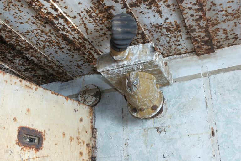 Vue du filtre dépoussiéreur avec sa plaque d'instruction (chambre de troupe gauche), photographie réalisée le 11 mai 2009Immatriculation